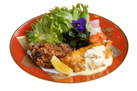 ①信州山賊焼きと宮崎チキン南蛮の食べ比べ